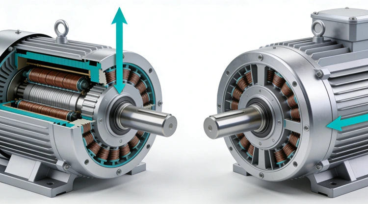Пресеци на аксијален флукс (лево) наспроти радијален флукс (десно)
